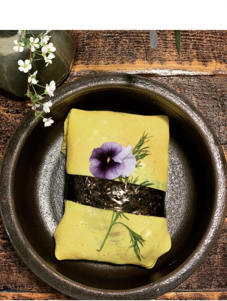 卵生地に包まれた上に花が載せている見た目から味覚を刺激してくる可愛いビビンバが味