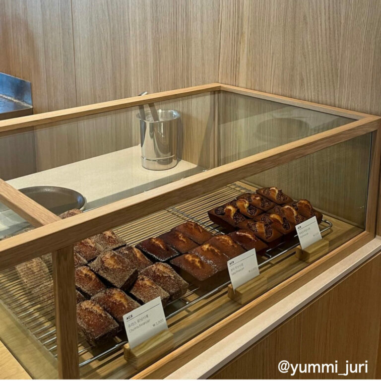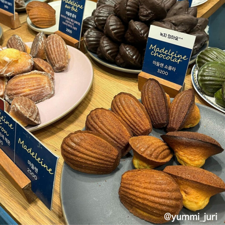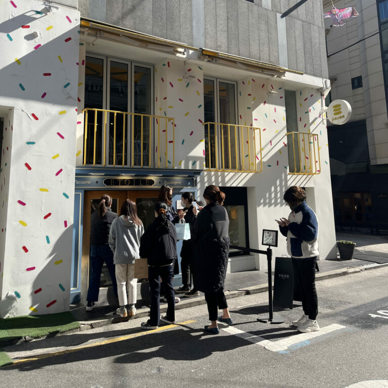 延南洞など人気エリアにも広げいてるエトゥワル本店。マドレーヌ以外にもフィナンシェ、ショコラ、クロワッサンなどもあり、テイクアウトのみで一組ずつ入店できるので、お店前で並ぶ。