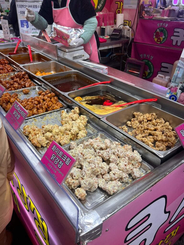 日本人は辛いものがあまり食べられないから、甘いタレのダッカンジョン(달콤 닭강정)、果物のタレのダッカンジョン(과일 달강정)、チーズマスタードダッカンジョン(치즈머스타드 닭강정)の3種類が日本人におすすめだよとのこと♡