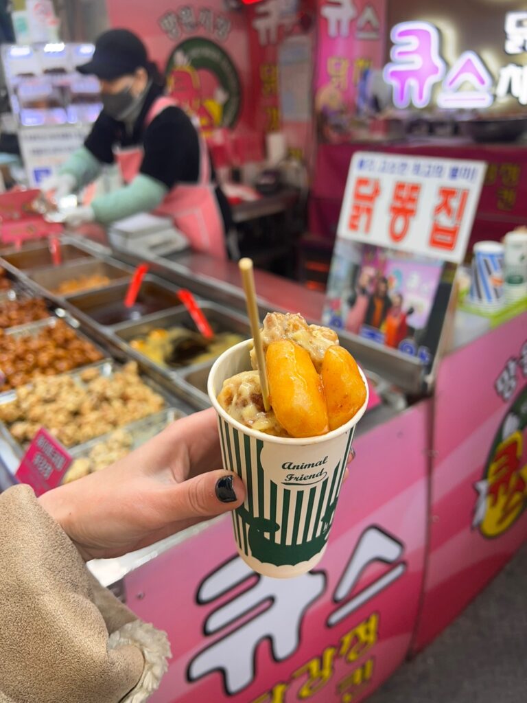 カップで注文すればお店の半分は立って食べられるスペースがあるので、その場で熱々のダッカンジョンを食べることができます✨