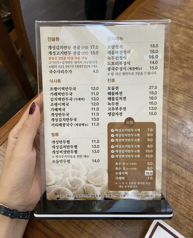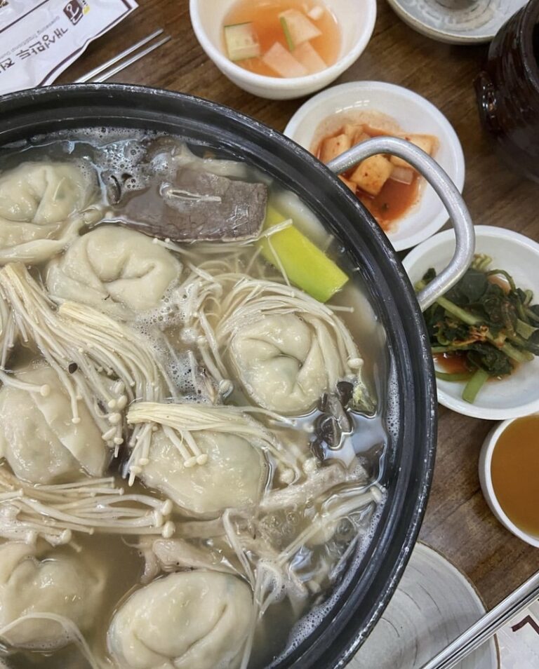 3代目続く変わらない味の行列が絶えない人気店。豚肉、ニラ、豆腐などがたっぷり入っているボリューム満タンのマンドゥ ( 韓国風餃子)の入れたスープや鍋が味わえる。他、緑豆ビンデトック(チヂミ)とトンドン酒(マッコリのろ過させる前段階のお酒)もおすすめ。