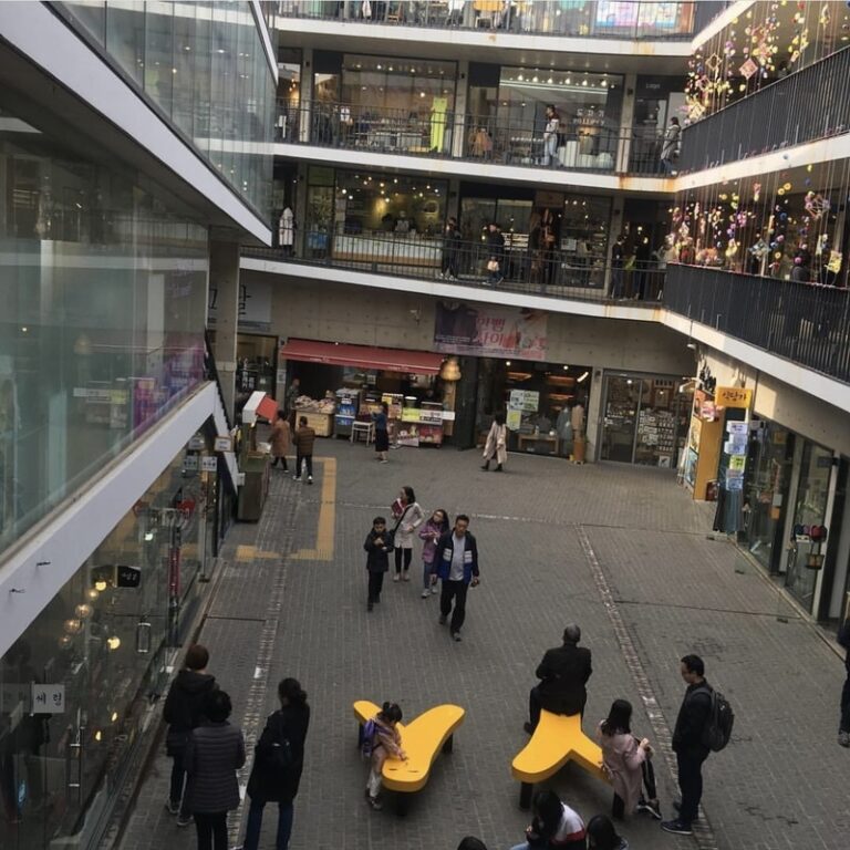 一直線の仁寺洞キルメイン通りのど真ん中に位置しているサムジキルは、複合文化空間として愛されている仁寺洞キルの必修コース。SNs写真投稿にも人気で四角旋通路に沿って歩きながら陶磁器、布、ガラス、皮、ファッションなど国の若手デザイナさん達のモダンで可愛い伝統工芸品が楽しめる。4階にはカフェやデザートなどもあり。