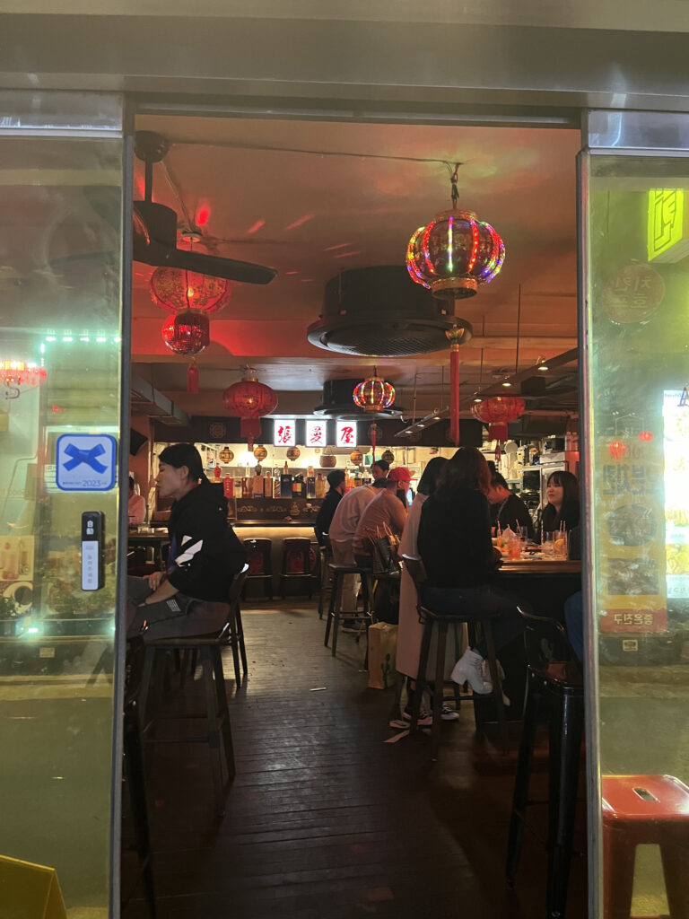 看板から個性のあるユニークな雰囲気のこちらのお店は、1990年代韓国で香港映画ブームの中、女優として人気だったマギーチャン(張曼屋)を店名にしたレトロな香港スタイル。料理は麻婆豆腐, 山東式ニンニクの芽麺、真珠団子が人気で飲料は高梁酒ハイボール、クラフトビール、カクテルがある。