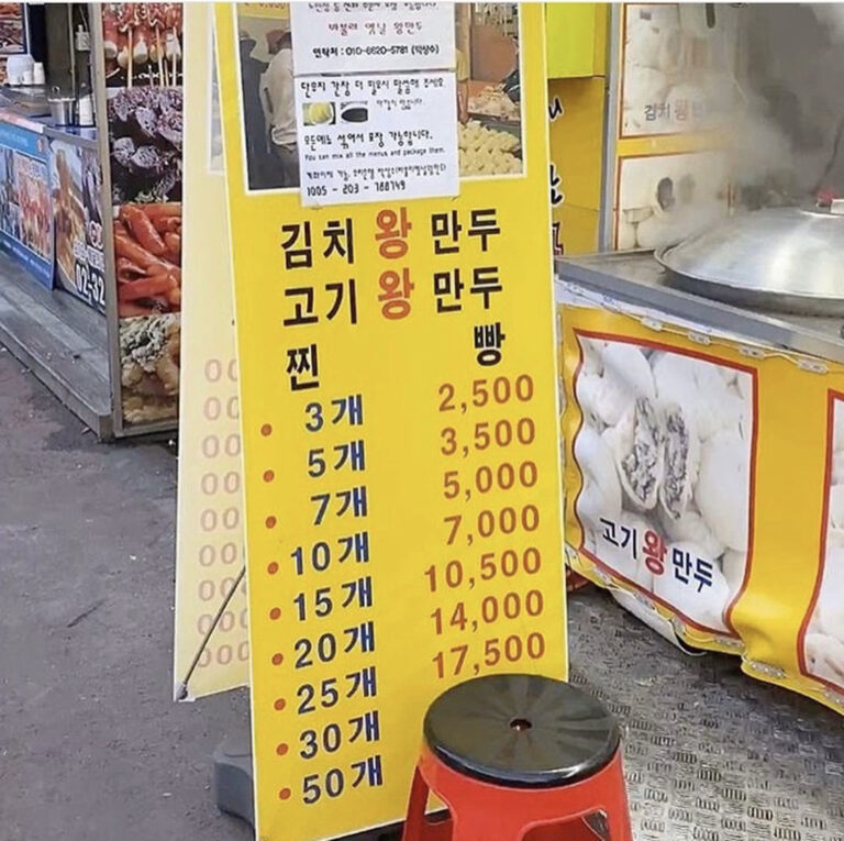 望遠洞の名物マンドゥ屋。キムチ、あんこ、肉など好きな組み合わせを注文