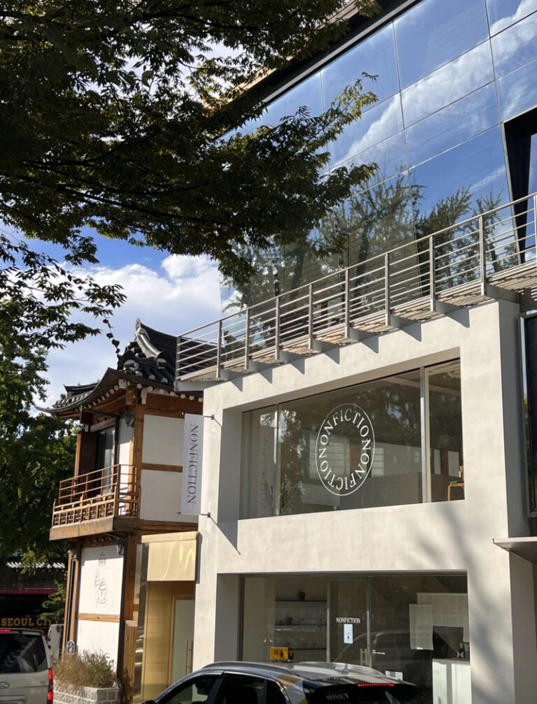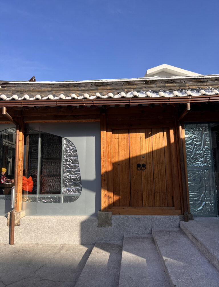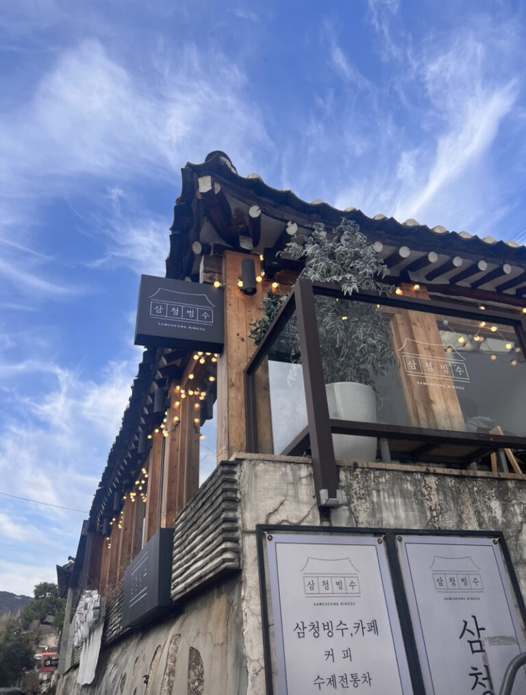 一番おすすめのソウルの歩きたい通りであるサムチョンドンキルは、景福宮の石垣道を沿って歩くと、右側は北村韓屋村に接していて、広い道路を挟んで両方にそれぞれの個性ある韓屋店が並んでいる。