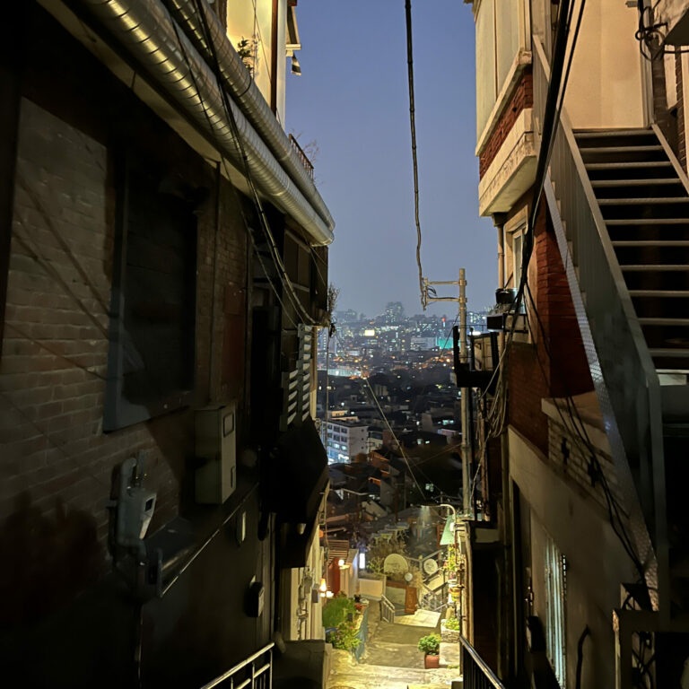 南山ふもとの古い村「厚岩洞」に、若手社長たちが住宅を改装したおしゃれなお店を出し始め、レトロブームのこの時代に合ったトレンディな街づくり。ソウル街が一望できるのが厚岩洞の魅力で、韓国ドラマ梨泰院クラスのロケー地になってから人気観光地でもある。明洞ロッテ百貨店前のバス停で405番に乗ってすぐというアクセスも抜群!厚岩洞の眺めの良いカフェで癒しのひとどき。