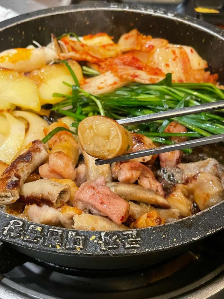 韓国のコプチャンは、こんがりと焼いたコプチャンとにらやキムチと一緒に食べる韓国スタイルで、シメの鉄板焼きも楽しめます。