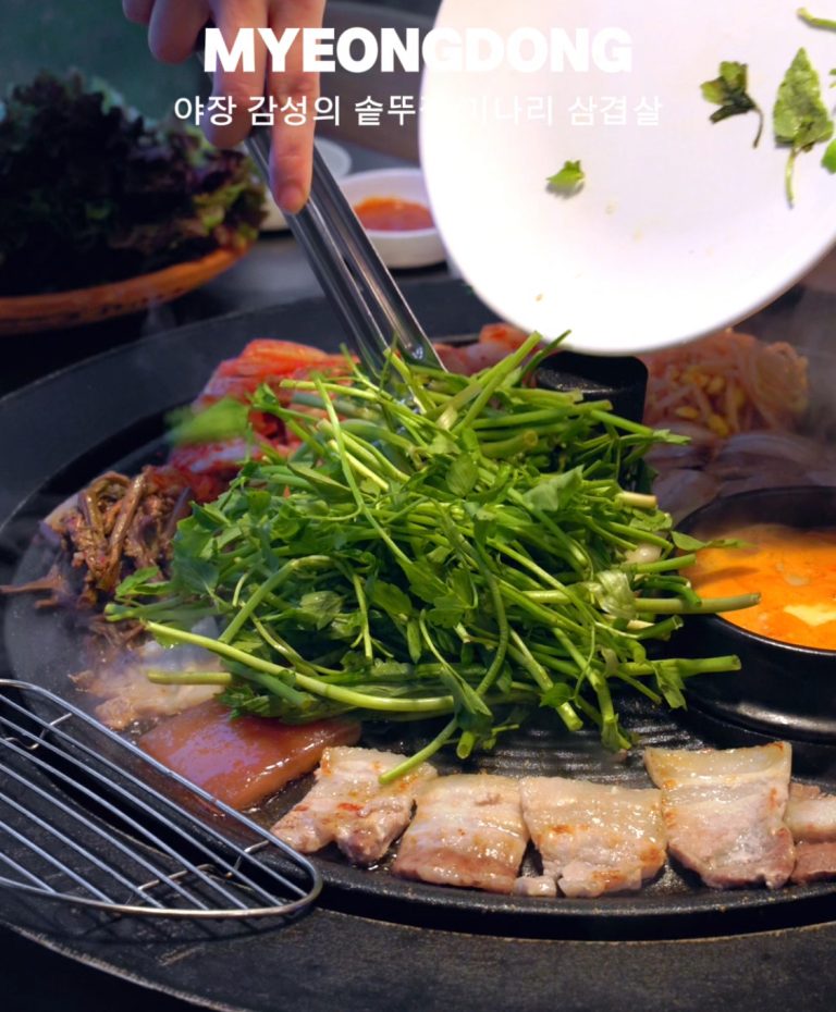 本場で人気のミナリサムギョップサルが味わえる #천하제일솥뚜껑 チョンハチェイルソットゥコン明洞店!