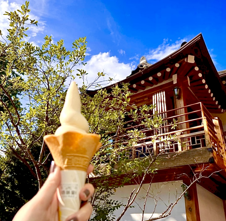 ソウルの景福宮三清洞キルの韓屋カフェ #백미당 百味堂(ペンミダン)三清店は、景福宮と接しているメイン通りに位置していて、100%オーガニックコーヒー豆と牛乳を使ったこだわりの飲み物やデザートが味わえるお店。ペンミダンラテ4,800ウォンとアイスクリームラテ5,800や牛乳アイスクリーム4,200とアイスクリームを入れたサンドアイスなどが人気!冬には、リンゴ生姜茶など、他では味わえないメニューも楽しめる。5,000ウォン。住所 ソウル鐘路区昭格洞73営業 11:30~20:30