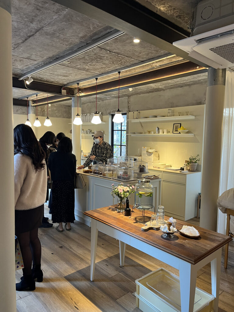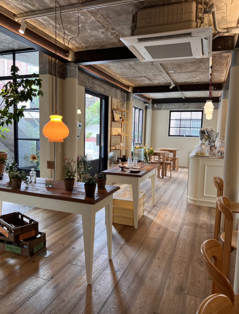 2階のレディースブランドショールームも楽しみの女性客率の高い可愛いカフェ。