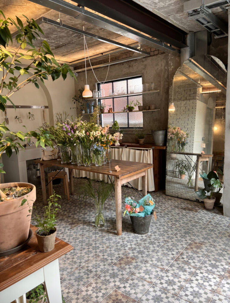 入口からどこを撮っても絵のような可愛い写真が撮れる人気フラワーカフェ。
